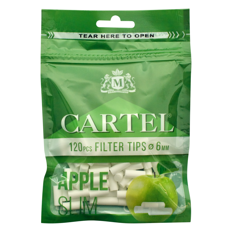 Descoperă o nouă dimensiune a fumatului cu Filtrele Cartel Green Apple 6/15 mm x 120 bucăți Slim și bucură-te de o experiență autentică și plăcută la fiecare țigară!